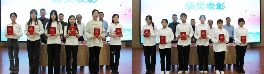 在大会表彰环节,数字媒体与艺术学院院长岳腾达宣读了获得2022-2023年度数字创意产业学院校企合作班优秀学生干部和优秀三好学生名单,并由出席大会领导共同为获奖学生颁奖。