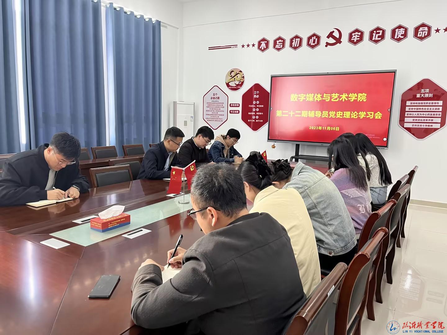 为落实学院2023年辅导员培训实施方案的要求,切实提升辅导员思想政治觉悟以及专业水平,数字媒体与艺术学院于11月6日311会议室开展辅导员党史理论学习会,全体辅导员参与此次学习。