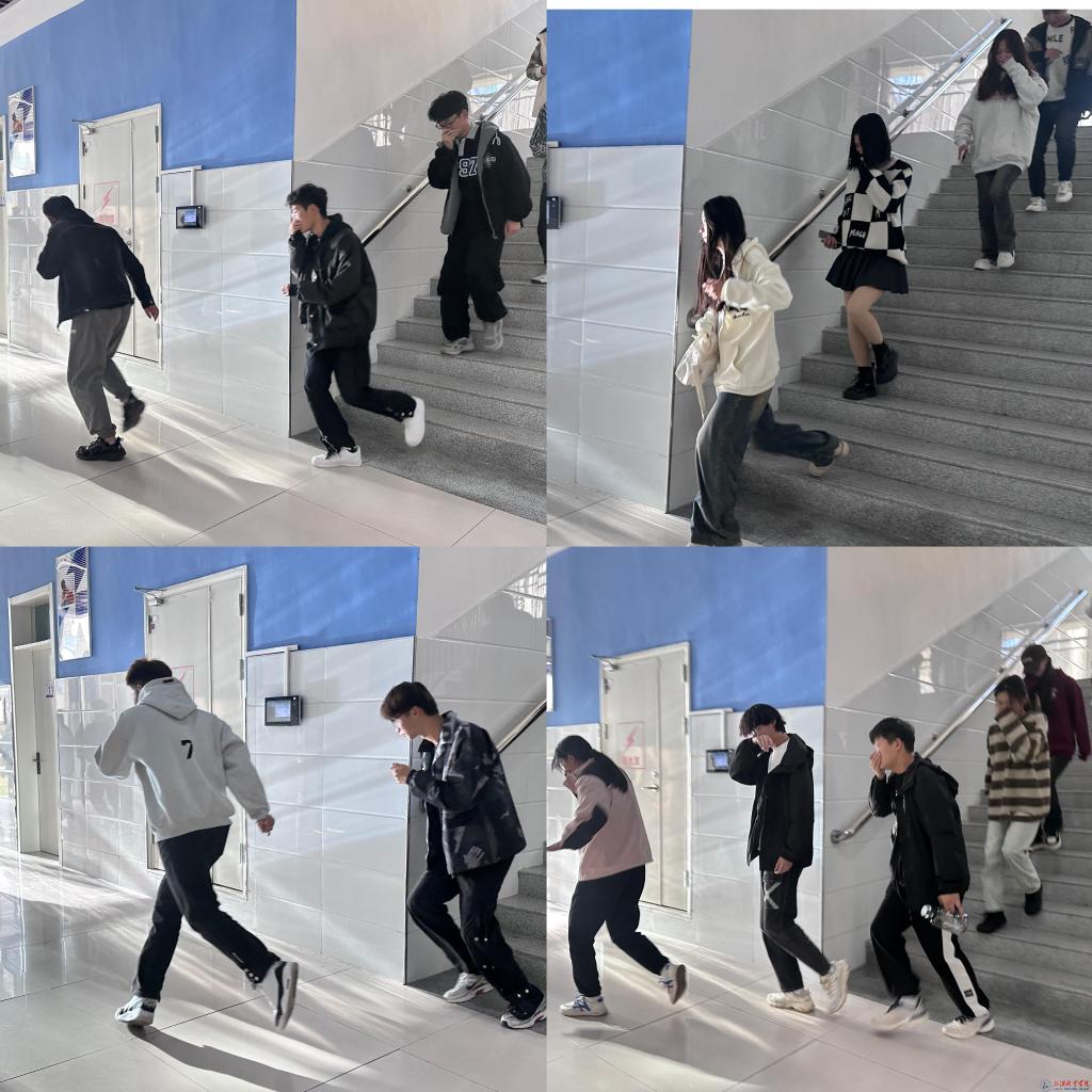 预防为主,生命至上。随着哨声的响起,各楼层负责人员迅速到达指定疏导区,同学们弯腰、低头、捂口鼻,迅速按照预定安全路线疏散至楼前空地,最后,班长清点人数,确保全体同学安全撤离。整个过程紧张有序、实用性强,达到了预期效果。