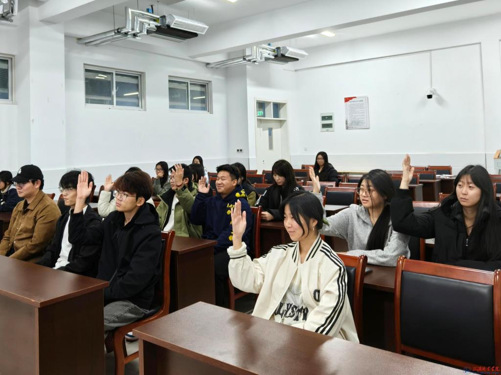 本次团课创新引入“声音辨识”互动环节,将抽象的安全知识转化为可感知的实践体验。同学们在辨别警报、疏散指令等关键声音的过程中,提升了险情判断与应急反应能力,实现了从“我要安全”到“我能安全”的意识和能力跨越,展现出青年一代的智慧与担当。