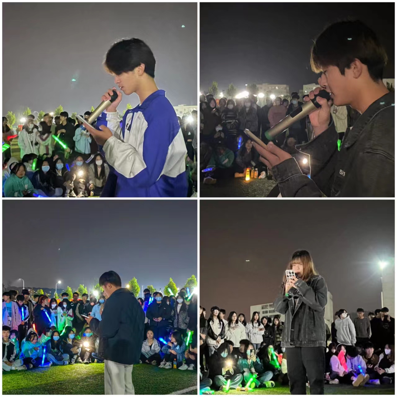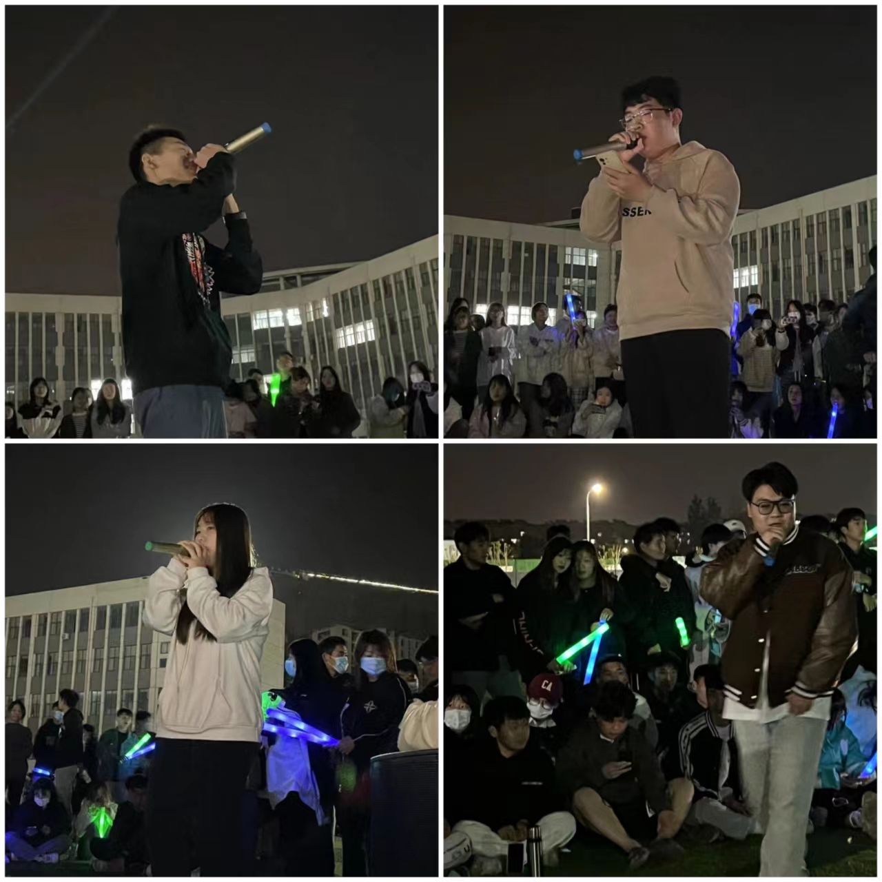 夜幕降临,同学们围坐一圈,伴随着掌声和欢呼声,音乐会拉开帷幕。流行音乐、说唱、民谣等多种音乐形式争相上演,大家时而轻声唱和,时而伴随着音乐一起舞动,挥舞的手机灯光仿佛夜空中的繁星,为夜幕下的音乐“舞台”烘托出欢乐氛围。伴随着同学们的欢声笑语,操场音乐会活动圆满落幕。