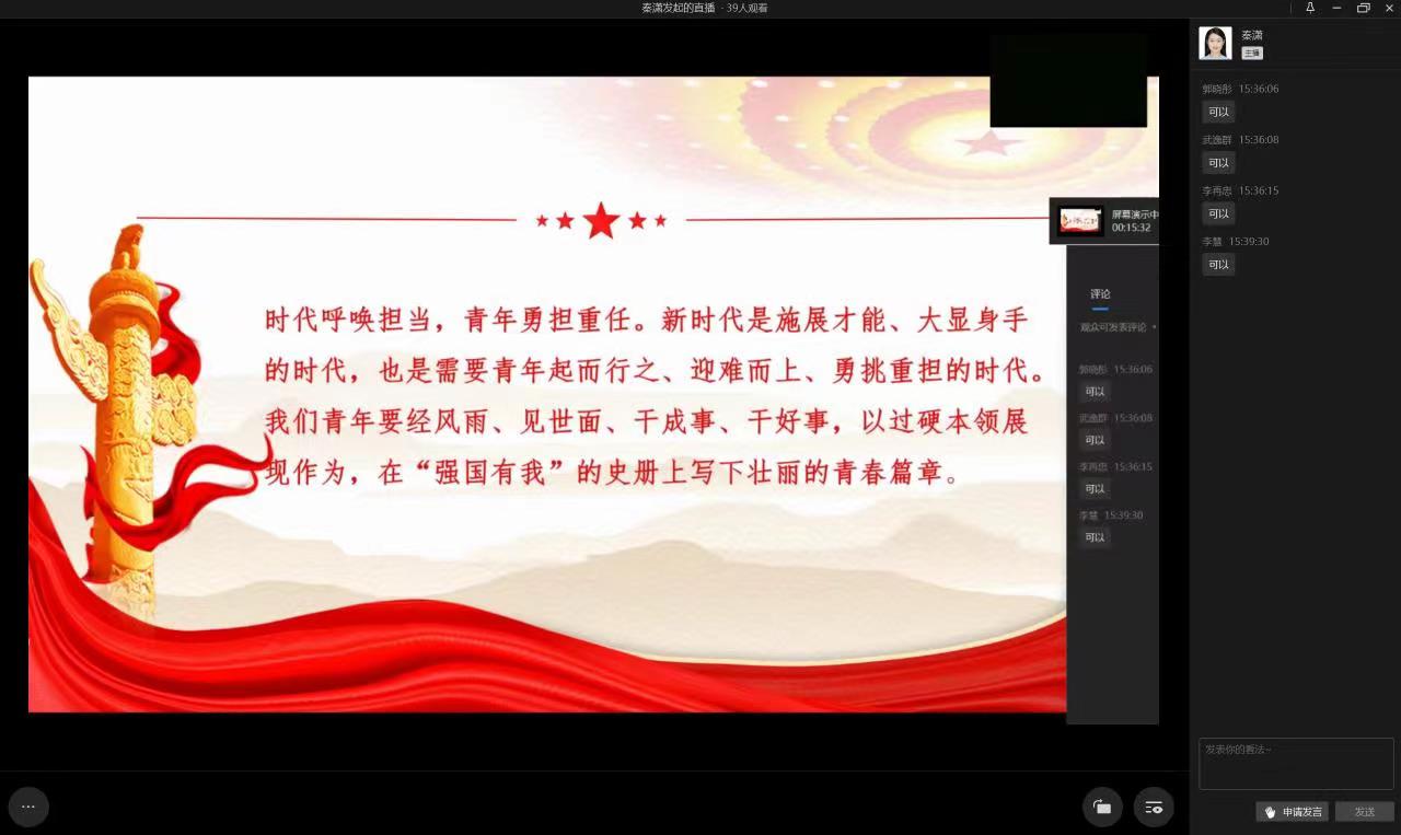 本次团课引导了青年团员全面领会党的二十大精神实质,并以自身实际树立远大理想;以两肩之宽担当时代责任;以刻苦学习练就过硬本领,以青春之我、奋斗之我奋发前行。