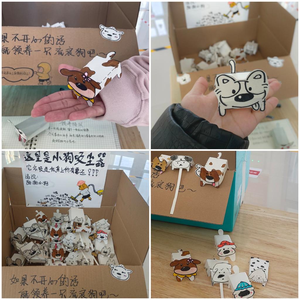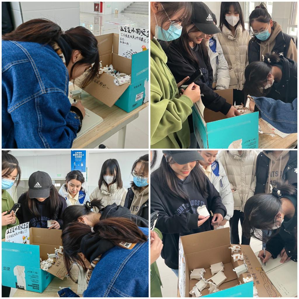活动前,由学生会文体部对废弃纸箱进行二次利用,绘制精美的小动物,并制作好领养协议书。活动中,同学们精心挑选自己心仪的小动物,井然有序的按流程领养,得到认养权的同学在领养协议书上写下自己的冬日烦恼,并让小动物带走它。活动现场热闹非凡,同学们在活动中收获了责任、爱心和成长。