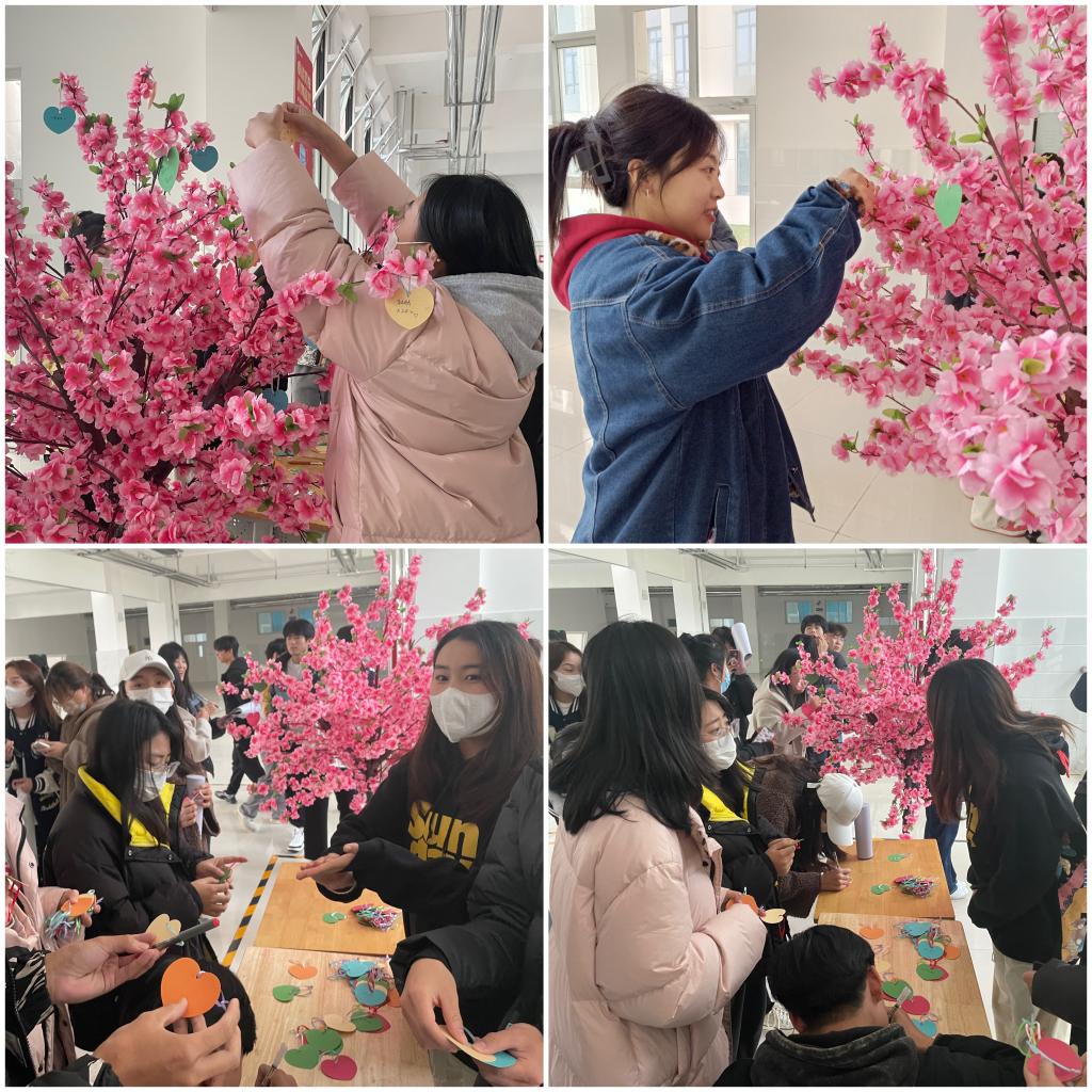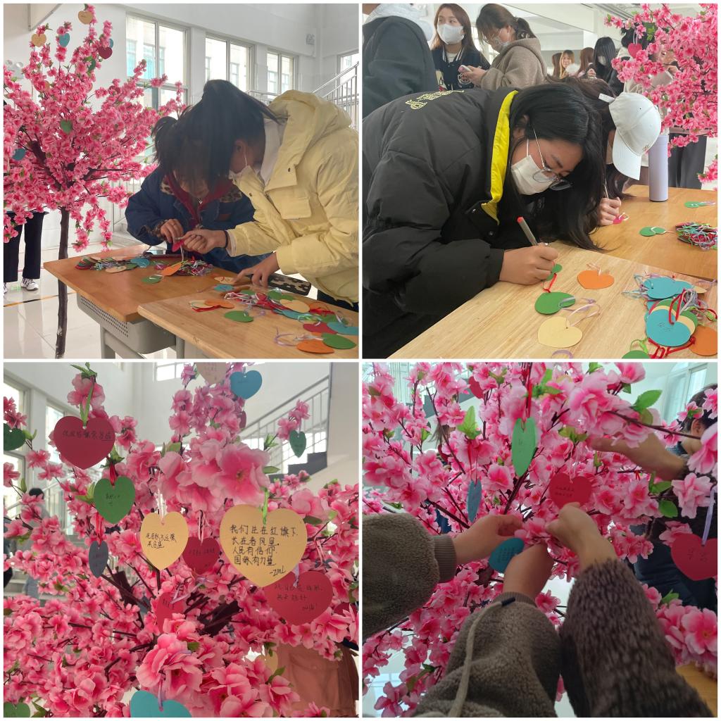 本次活动由学院文体部准备好祝福树和贺卡,摆放在J04数媒学院教学楼一楼大厅。参与活动的同学们在彩色爱心卡片上写上祝福党的话,以表达对党的热爱之情,同时也写下自己对朋友的鼓励和对未来的期盼。祝福树上爱的语录沁润了学生们的内心,希望学生们内心时刻温暖,未来充满阳光。