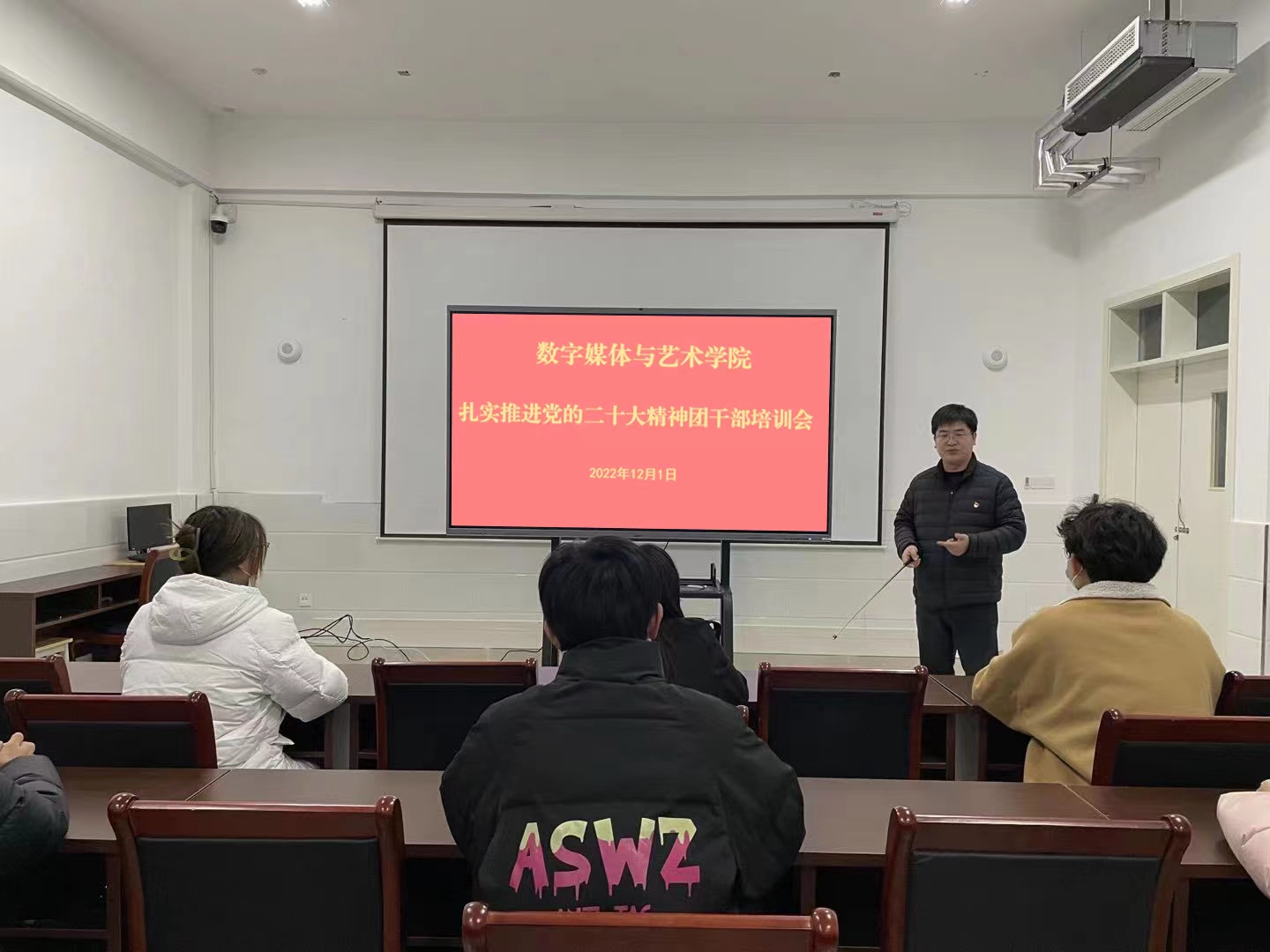 为深入贯彻落实党的二十大精神,高质量推进全校共青团工作,搭建学习交流、风采展示等平台,不断提升团干部作风建设和能力素质,数字媒体与艺术学院与12月1日组织开展“扎堆推进党的二十大精神”团干部培训会。