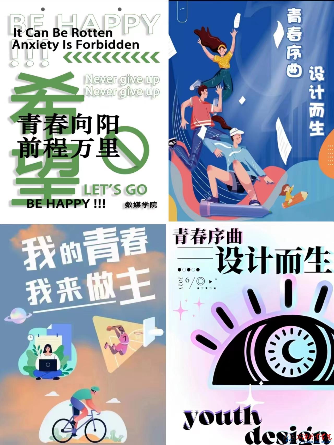 在大赛期间,同学们积极响应、踊跃参加。此次海报设计作品,形式多样,不拘一格,采用设计排版、漫画等方法来设计海报。以发扬青春活力为指引,充分发挥人文素养与艺术想象,创作出一幅幅展示当代大学生活力与朝气的精美画作。