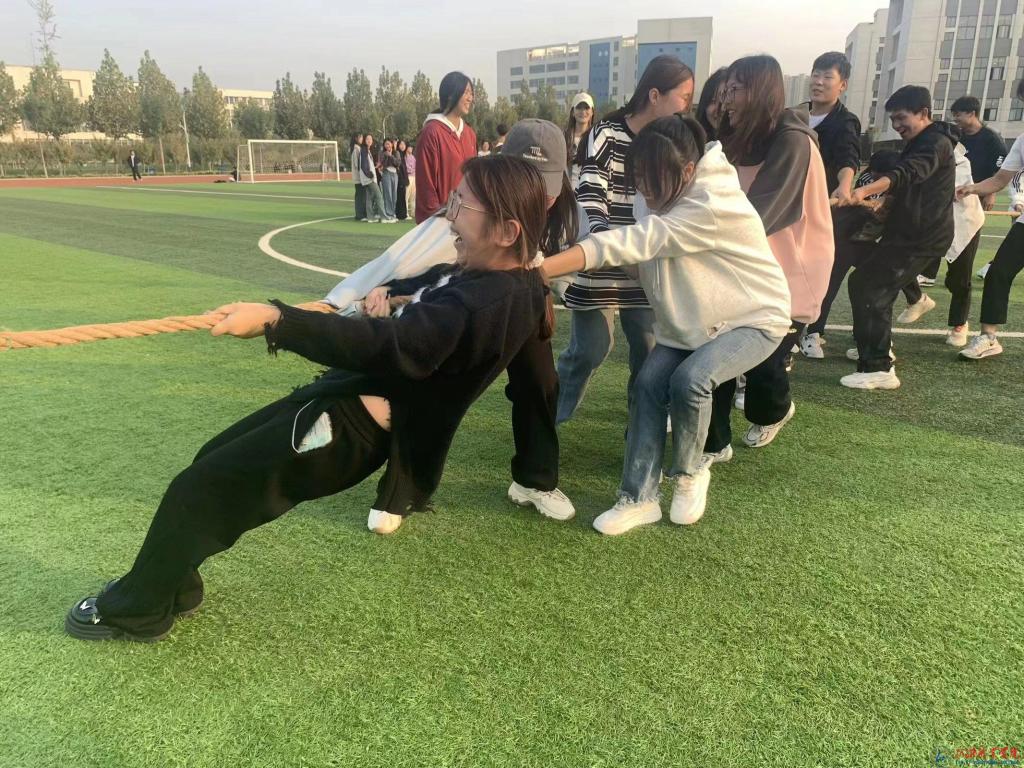 斗力频催鼓 争都更上筹。比赛过程中,学生分为两队,在规定位置站好,用绳子把脚腕处缠起,肩并肩一起赛跑,最先到达终点的队伍获胜。同学们争分夺秒,展开激烈追逐,表现出了众志成城、齐心协力的决心。
