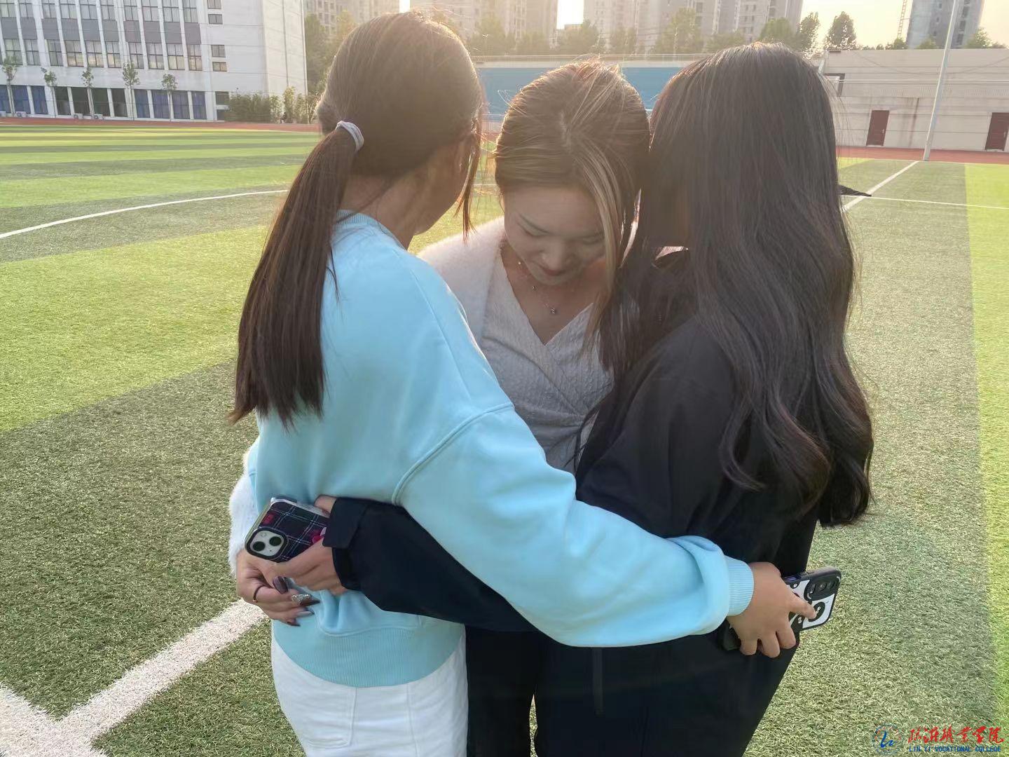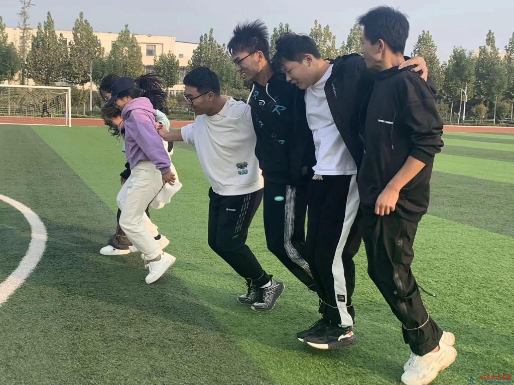 拥抱欢愉步履生,繁星闪烁纵庐城。活动开始,同学们分为两组在操场中间围成圈进行跑动,听到主持人发出的“抱团”口令后,互相拥抱,超出或低于规定“抱团”数字者淘汰。他们在秋日的暖阳下大放异彩,在秋天的足迹里与大自然相拥。