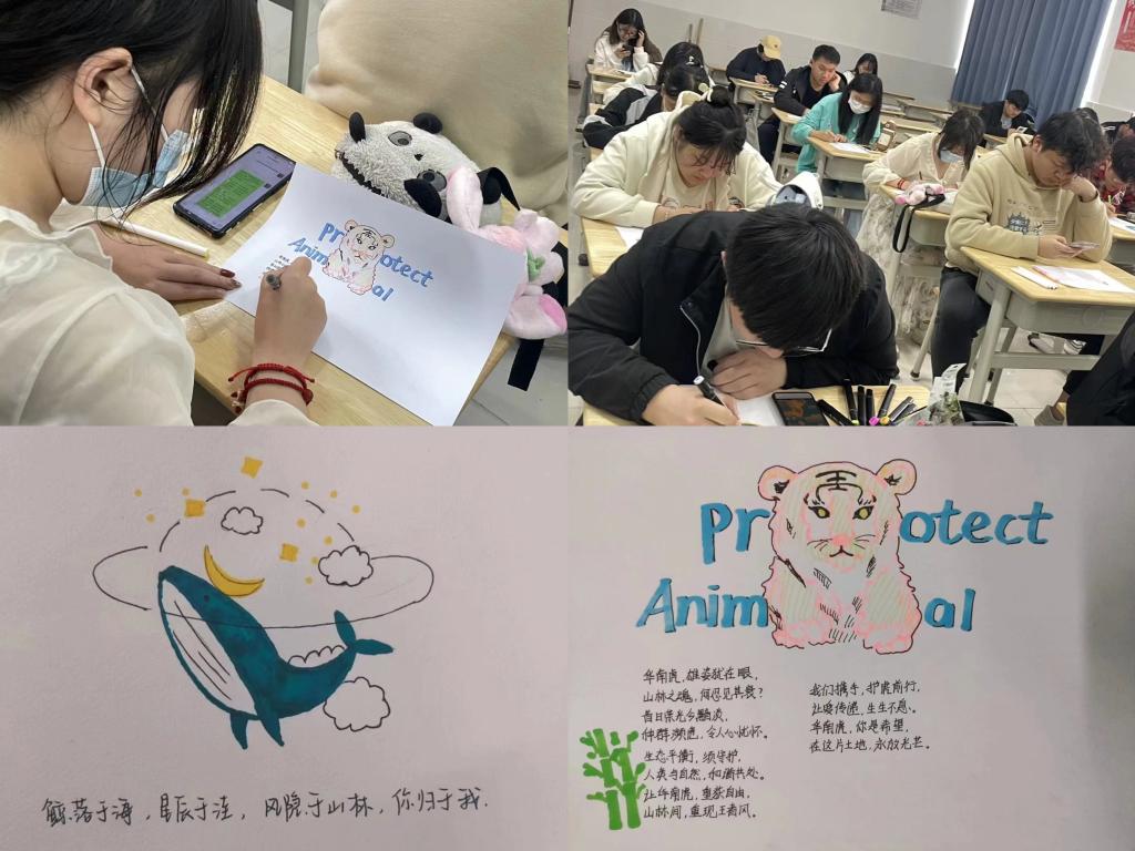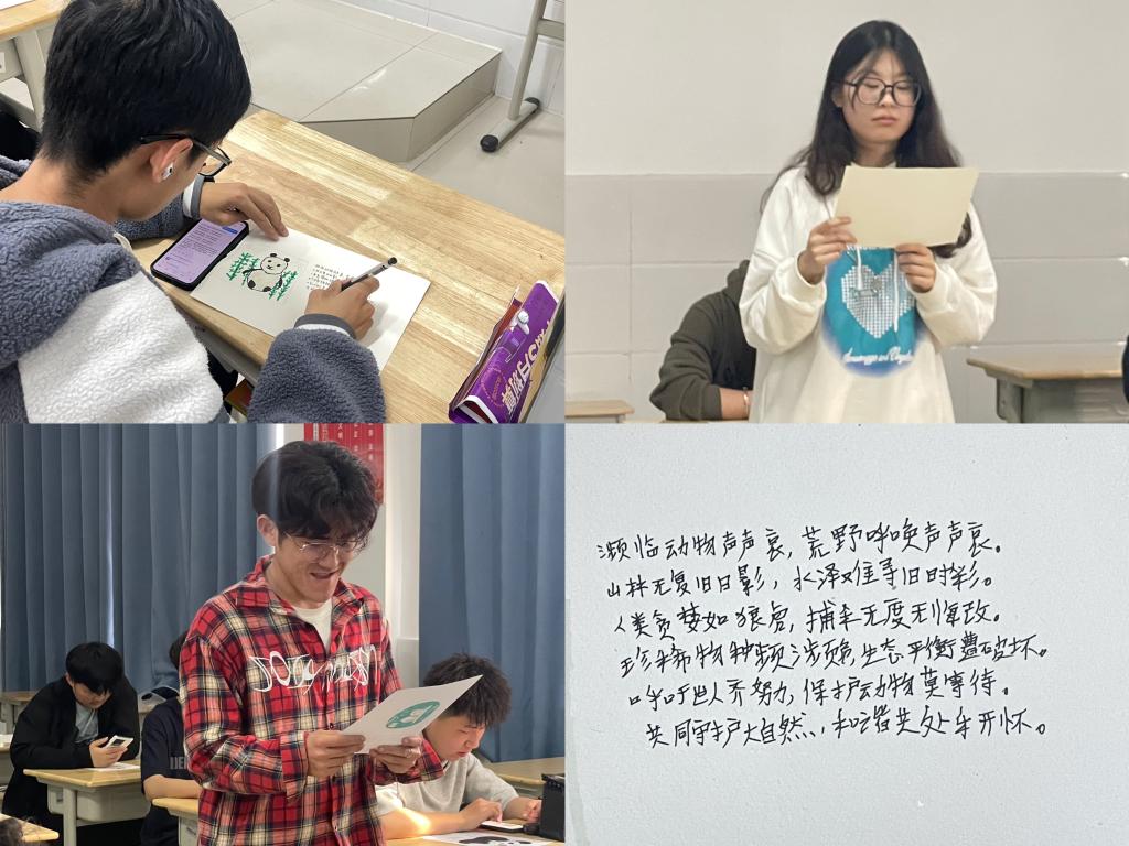 爱护动物,传递友爱。4月11日,学子以“珍稀动物”为依托,将“保护”“珍贵”“特有”“生存”等词汇融入到词条中,让动物保护与诗词创作相融合,传达保护野生动物的重要性和必要性。