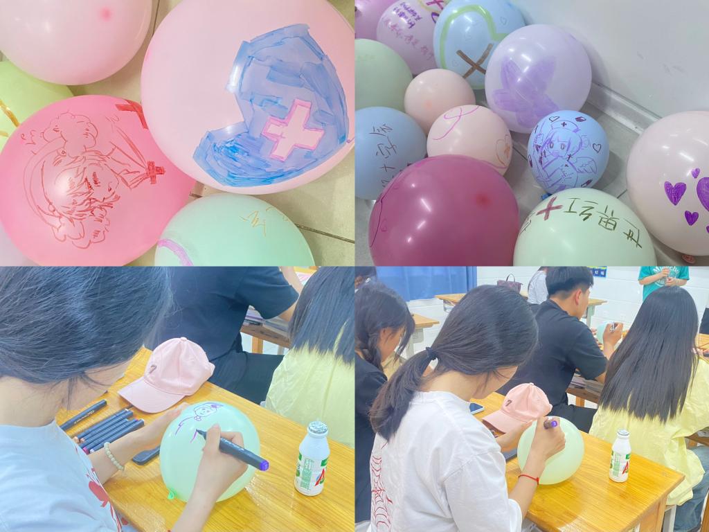 活动中,学生围聚在气球彩绘区,拿起彩笔,在气球上绘制他们对红十字会精神的理解与感悟,普及了健康知识,传递出爱与和平的美好愿景。