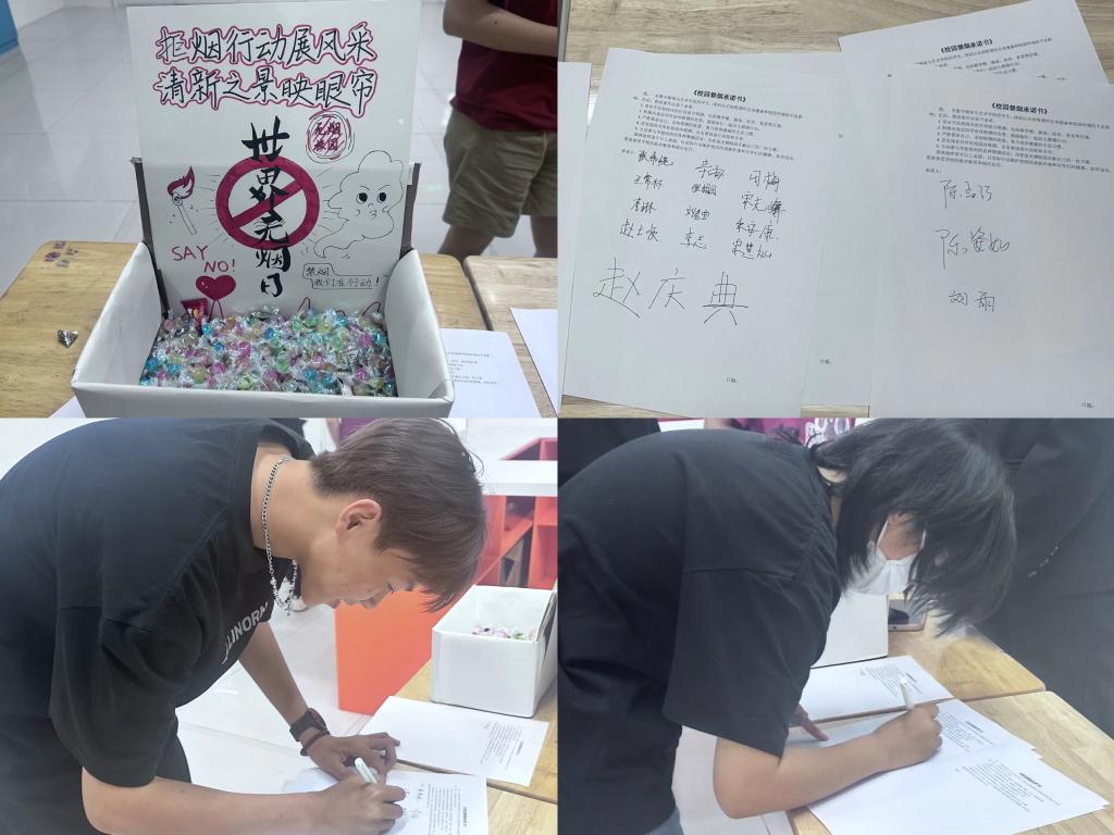 为营造无烟校园环境,增强学生的健康意识,数字媒体与艺术学院于5月30日在J04教学楼开展“拒烟行动展风采,清新之景映眼帘”我为同学办实事活动。