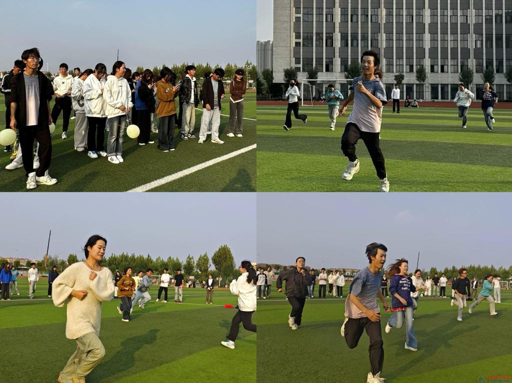 学生四人为一组进行4×100米接力,每组要分别在100m、200m、300m、400m处获得“柴”“米”“油”“盐”代表物,最先集齐代表物的队伍获得胜利,整个比赛过程紧张而有趣,他们享受着团队合作的乐趣,营造了轻松愉快的氛围。