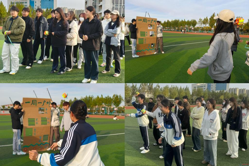 学生提前准备纸板,并裁剪出代表财运、事业、感情、家庭、健康五个方面烦恼的大洞。同学们站在一定距离外,手持沙包投掷,若三个沙包全部投中,则可领取精美的小奖品。同学们在轻松愉快的氛围中释放了压力,展现了他们良好的团队协作精神和对美好生活的向往。