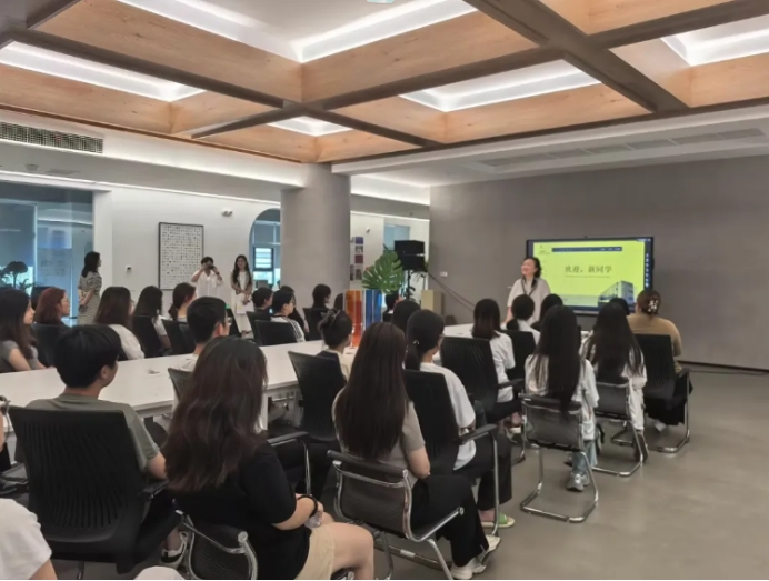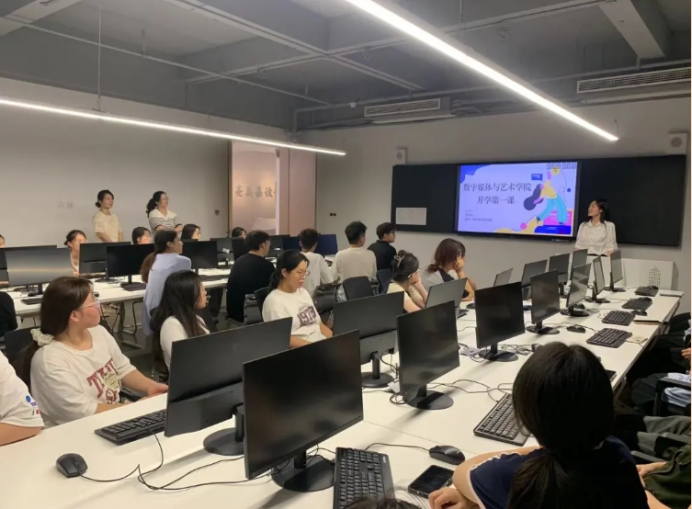 亮美嘉设计学院汪冰影院长于第一课上亲切地向同学们介绍了学校环境,详细描绘了校园的每一个角落,让同学们对即将学习生活的地方有了更加清晰的认识。